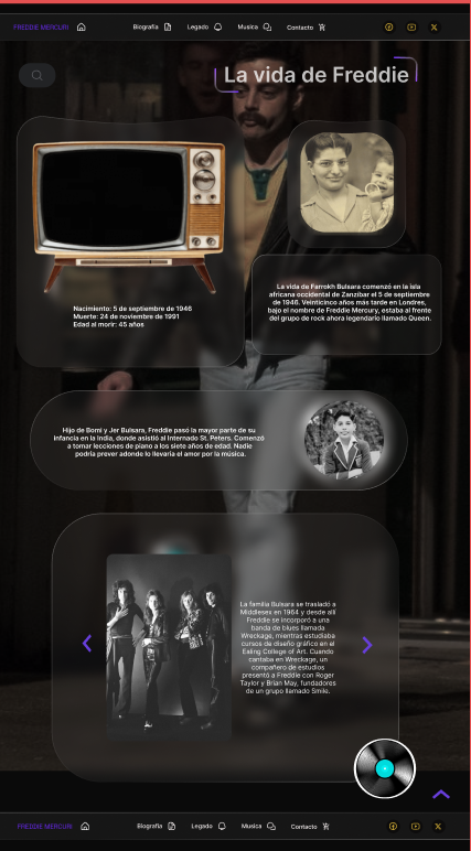 Biografía: lleva a la sección donde cuentas en pocas líneas quién fue Freddie Mercury.
